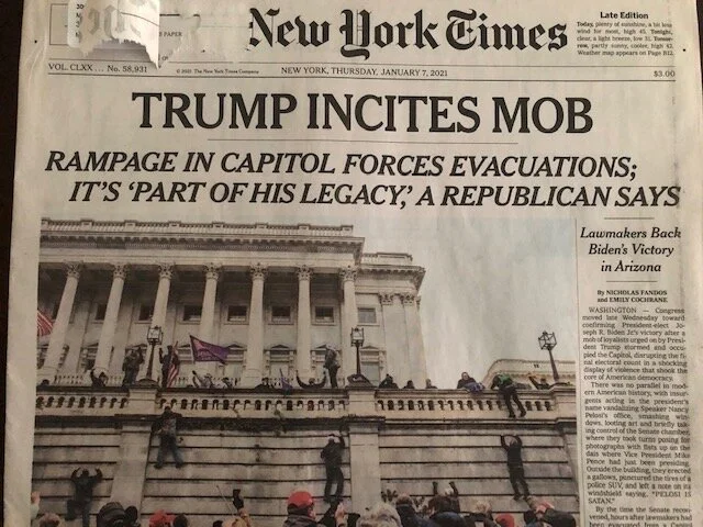 UPDATE, January 11: I thought I might do readers a favor and read all the way through that NYT article with the headline “Trump Incites Mob,” to see if they ever quote any words that constitute the supposed “incitement.”In the whole very long article, the entirety of direct quotation from Trump’s pre-riot speech is found in this one paragraph: